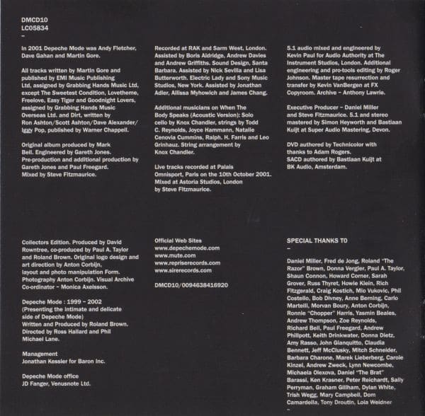 "Breathe" 05:16 • Produced by Mark Bell. Engineered by Gareth Jones. Pre-production and additional production by Gareth Jones and Paul Freegard. Mixed by Steve Fitzmaurice. Mastered at The Exchange by Mike Marsh.