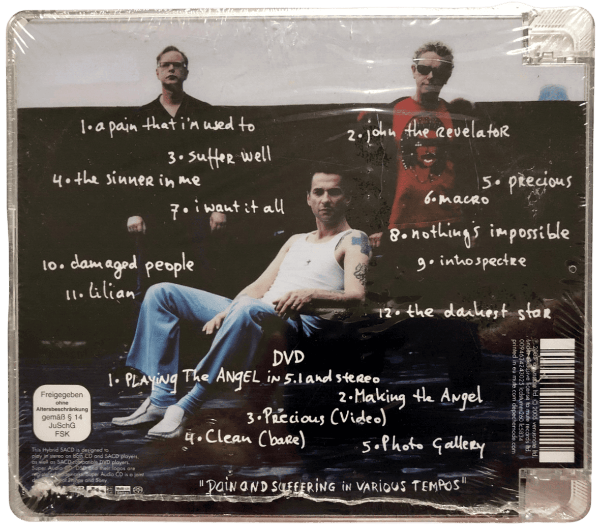 ‘Precious’, the first single, is quintessential Mode - all cyber pulse and glorious chorus. ‘The Sinner In Me’ perfectly balances the organic and synthetic, and climaxes, as do most of the tracks, with staccato blasts of noise and FX. On ‘Suffer Well’ Dave's voice is more powerful than ever. ‘Macrovision’, sung by Martin Gore, is hi-tech pop with an enormous hook while ‘John The Revelator’ is one of many potential hit singles.