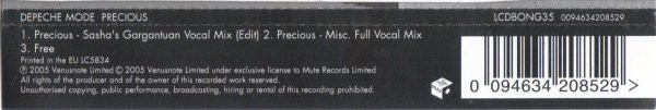 "Precious" (Sasha's Spooky Mix - Edit) 07:33 • Remix and additional production by Sasha and Spooky. Programming, mixing and engineering by Barry Jamieson. Sound design and sonic sculpting by Simon Wright. Recorded at Spooky's studio, South London.