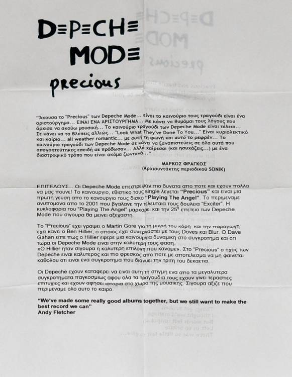 "Precious" (US Radio Version) 04:07 • Produced by Ben Hillier for 140dB. Mixed by Ben Grosse. Programming by Dave McCracken and Richard Morris. Engineered by Ben Hillier and Richard Morris.